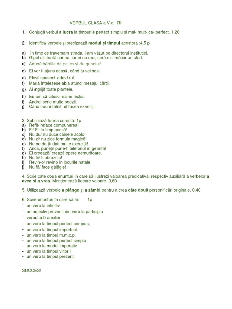 Test Verbul Clasa A 5a Docx