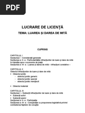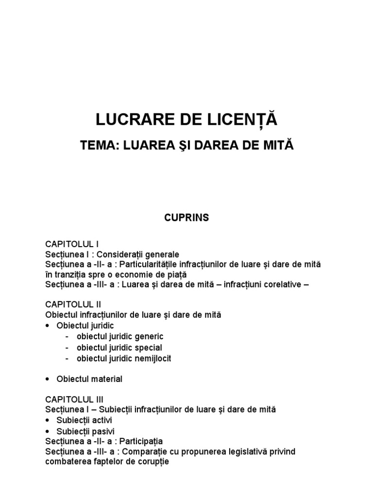 Licenta Luarea Si Darea De Mita Infractiuni De Coruptie Savirsite In Domeniul Afacerilor Drept 383416