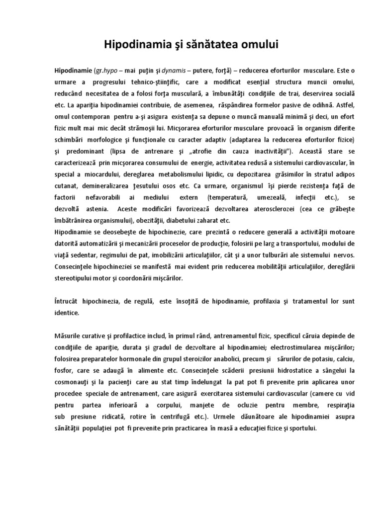 Hipodinamia Si Sănătatea Omului
